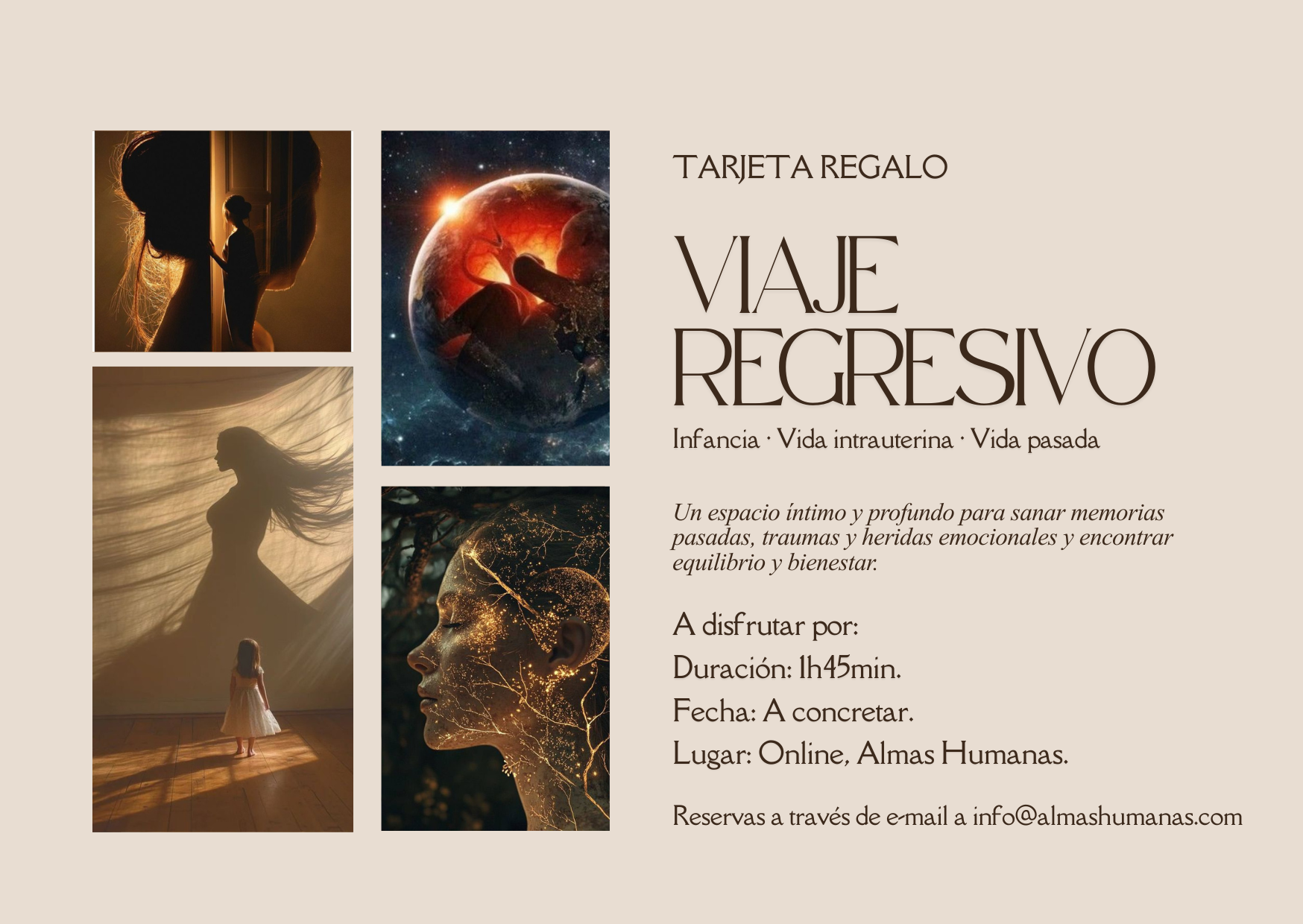 ¿Quieres hacer un regalo especial? Para una amiga, un ser querido o para ti. 1 sesión: 111€Bono 3 sesiones: 270€ Quiero 1 sesión: 111€Bono 3 sesiones: 270€ Quiero Proceso completo: 350€ Quiero